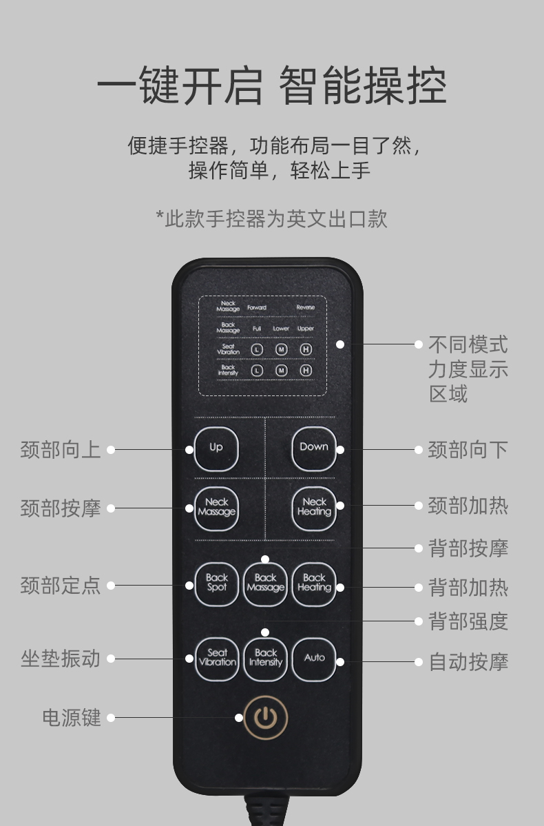 單震動座椅按摩,3級強度(單/雙震動可定制)